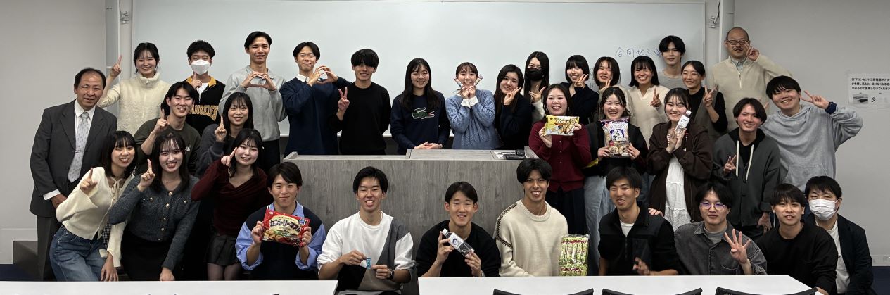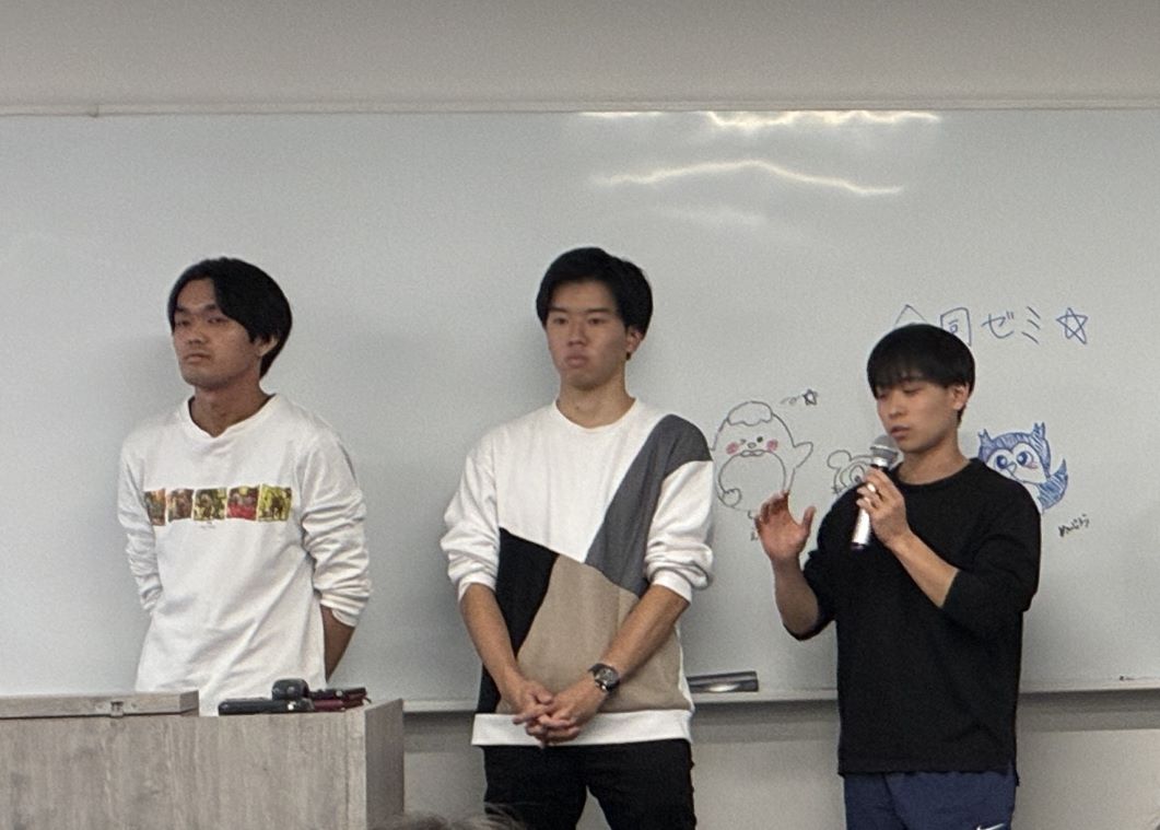 3年生の中間発表(10月10日)3年生は4つのチーム(日本の食、生きづらさ、観光、サッカーの各テーマ)でそれぞれ調査を進めていて、毎回入れ替わりで1つのチームが 中間発表をしています。夏休み明けは、合宿で訪問調査した成果と、今後の研究計画・見通しを整理して報告しています。 その報告に対しては、聞いている側が 率直な感想や質問をぶつけるので、緊張感が漂います。 ![]() 大学生のための金融リテラシー講座を受けました(10月3日)近年は、学生の間で投資(による資産形成)への関心が高まっており、知識がないままに危うい投資に手を出すケースや、詐欺に遭うケースもあるようです。成年年齢の引き下げに伴い、大学生に対する金融リテラシー教育の重要性が高まっていますが、大学では必ずしも必修として金融教育を学ぶわけではありません。 資産運用の話は、ゼミの研究テーマとは異なりますが、学生が自らの将来設計を考えるうえで重要な知識であり、かつ自分から進んで話題にしにくいテーマ でもあるので、あえてゼミの機会を使うこととしました。 日本証券業協会が寄付講座として、大学生のための「社会に出る前に知っておきたいマネーの基礎知識」を無償で提供しておられるので、3年生を対象に講義を 行っていただきました。 講師の加藤木先生(ファイナンシャルプランナー)には金融の基礎知識からわかりやすく丁寧に教えていただくとともに、預金や債券、 株などいくつかの資産運用を組み合わせたシミュレーションゲームもあり、楽しみながら学ぶことができました。ありがとうございました。 ![]() 夏合宿に行きました(9月17日〜19日)昨年度に引き続き、2〜3年生合同で、大阪に行きました。4つの班に分かれて、それぞれのテーマに沿って訪問調査をしてきました。 レクリエーションも、昨年は全員でUSJに行きましたが、今年度は分かれて観光をしました。 それぞれに合った合宿の楽しみ方を見つけたようです。 くわしくは、こちらのページをご覧ください。