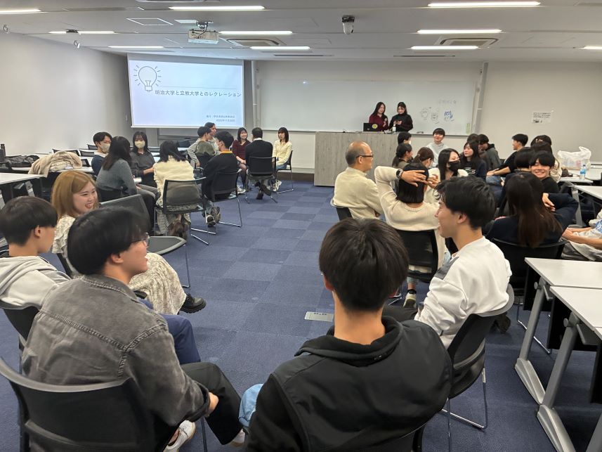 明治・立教のゼミ合同報告会(12月15日)明治大学駿河台キャンパスにて、立教大学と明治大学の4つのゼミが合同で報告会を開きました。小関ゼミは、高齢化班、SDGs 環境班、商店街班がそれぞれ発表しました。 報告会の後は、忘年会を兼ねて、皆で懇親会に参加しました。