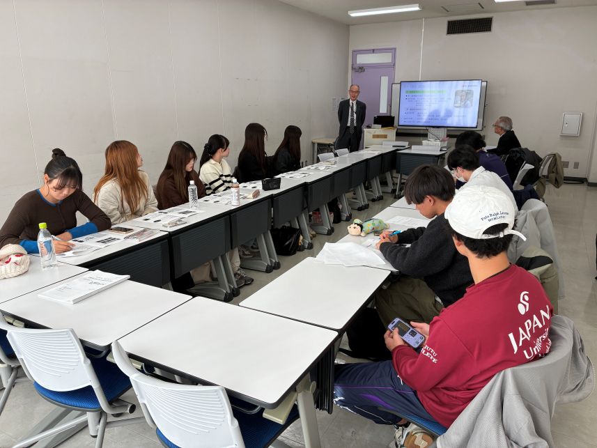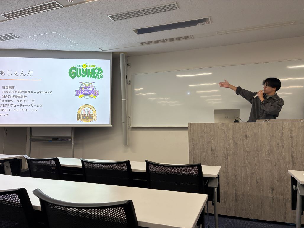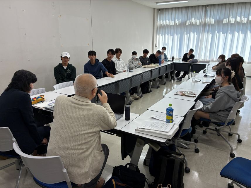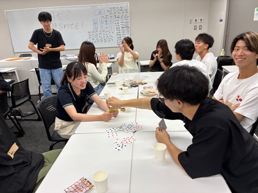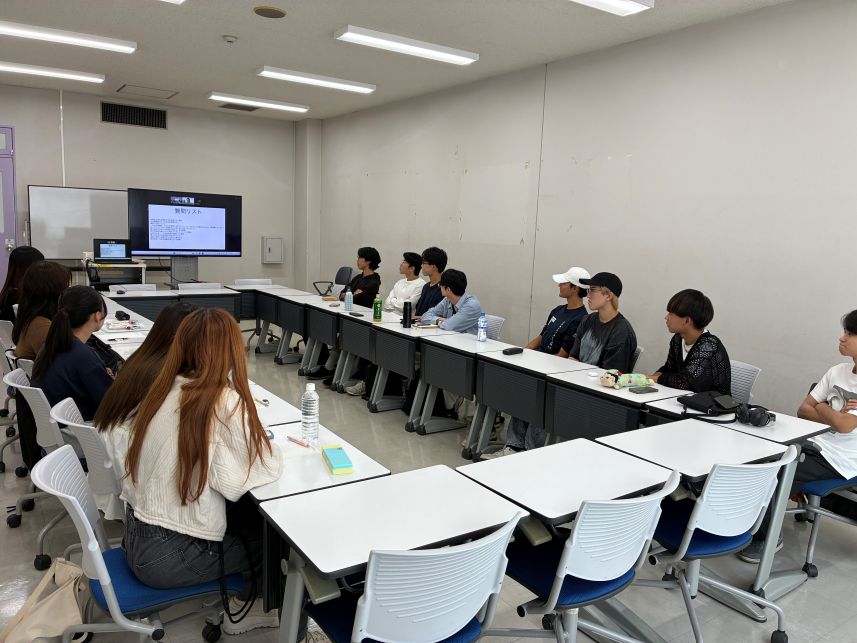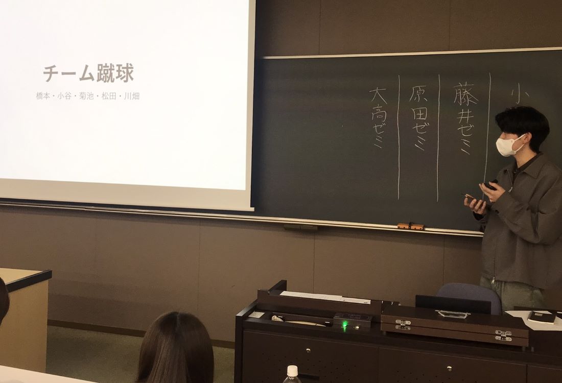 3年生の中間発表(10月10日)3年生は4つのチーム(日本の食、生きづらさ、観光、サッカーの各テーマ)でそれぞれ調査を進めていて、毎回入れ替わりで1つのチームが 中間発表をしています。夏休み明けは、合宿で訪問調査した成果と、今後の研究計画・見通しを整理して報告しています。 その報告に対しては、聞いている側が 率直な感想や質問をぶつけるので、緊張感が漂います。 ![]() 大学生のための金融リテラシー講座を受けました(10月3日)近年は、学生の間で投資(による資産形成)への関心が高まっており、知識がないままに危うい投資に手を出すケースや、詐欺に遭うケースもあるようです。成年年齢の引き下げに伴い、大学生に対する金融リテラシー教育の重要性が高まっていますが、大学では必ずしも必修として金融教育を学ぶわけではありません。 資産運用の話は、ゼミの研究テーマとは異なりますが、学生が自らの将来設計を考えるうえで重要な知識であり、かつ自分から進んで話題にしにくいテーマ でもあるので、あえてゼミの機会を使うこととしました。 日本証券業協会が寄付講座として、大学生のための「社会に出る前に知っておきたいマネーの基礎知識」を無償で提供しておられるので、3年生を対象に講義を 行っていただきました。 講師の加藤木先生(ファイナンシャルプランナー)には金融の基礎知識からわかりやすく丁寧に教えていただくとともに、預金や債券、 株などいくつかの資産運用を組み合わせたシミュレーションゲームもあり、楽しみながら学ぶことができました。ありがとうございました。 ![]() 夏合宿に行きました(9月17日〜19日)昨年度に引き続き、2〜3年生合同で、大阪に行きました。4つの班に分かれて、それぞれのテーマに沿って訪問調査をしてきました。 レクリエーションも、昨年は全員でUSJに行きましたが、今年度は分かれて観光をしました。 それぞれに合った合宿の楽しみ方を見つけたようです。 くわしくは、こちらのページをご覧ください。