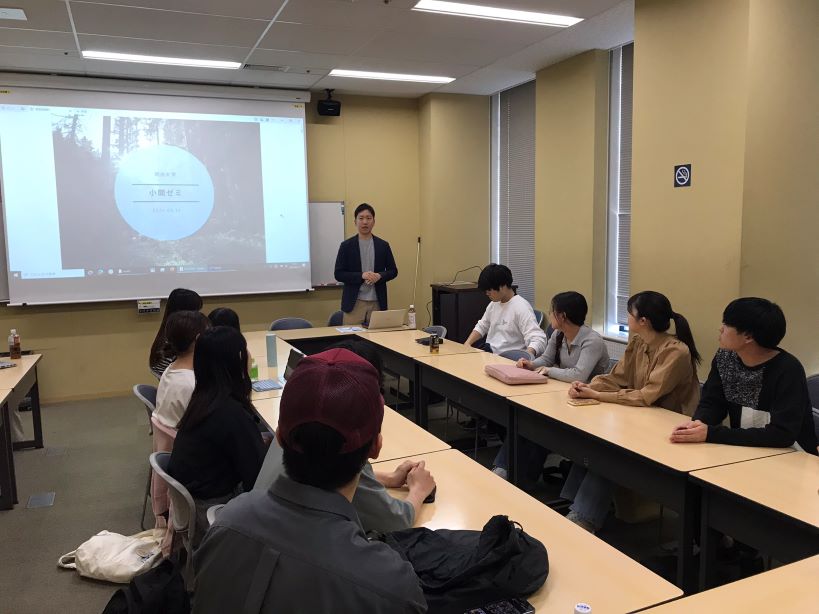ボーイスカウト日本連盟の山田哲司さんをゲストにお呼びしました(5月14日)3年生のゼミで、経営学部公共経営学科卒業生の山田哲司さんをゲストにお呼びし、お話をしていただきました。山田さんは、大学進学時に"社会"に関心を持ち、公共政策学科で学びたいと考えて入学したそうです。 就職活動の際にも、社会に役立つ仕事がしたいという動機で、先輩の影響もあり、数ある選択肢の中から非営利組織を就職先に選びました。 それが公益財団法人ボーイスカウト日本連盟でした。 まさに公共経営学科を体現したような方です。たまたま先日、あるところで偶然お目にかかり、ゼミで後輩を激励してほしいとお願いしたところ快諾いただきました。 ボーイスカウトは、名前は知っているが、どんな活動をしているのかと問われると、知っているような知らないような…。 山田さんには、ボーイスカウトとは何か、から始まって、公益財団法人が企業とどう違うのか、日本連盟という組織がどのような仕事をしているのか、 さらには仕事のやりがい、職場の雰囲気など幅広い内容を、わかりやすく解説していただきました。つい笑ってしまうようなエピソードもふんだんに交えておもしろくお話しいただいたので、あっという間に 時間が過ぎてしまいました。最後には、後輩の学生への熱いメッセージもいただきました! 非営利組織に就職するというと、なかなかイメージがわきにくいかもしれませんが、今回の山田さんのお話から、なるほどこういう働き方・生き方もあるんだということを具体的にイメージできました。 本当にありがとうございました!