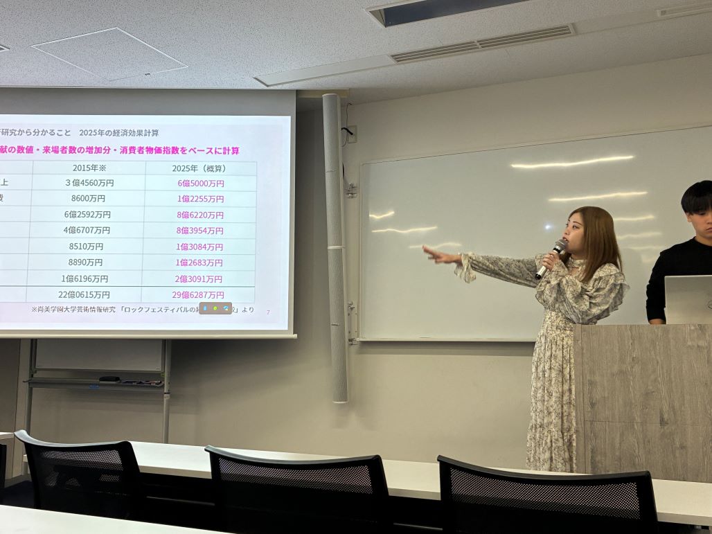 高木睦美さん・岡ア七海さんをゲストにお招きしました(12月10日)昨年に引き続き、一般社団法人ロケツーリズム協議会事務局の高木睦美さんと岡ア七海さんを2年生のゼミのゲスト講師にお招きしました。 高木さんは(株)地域活性プランニングで専門誌『ロケーションジャパン』の編集に、また岡アさんは同じく(株)地域活性プランニン グでウェブサイト「ろけなび!」の運営に携わっておられます。 観光資源が乏しい地域にも、ロケツーリズムを通して観光客を呼び込み、やがてはその地域のファンを増やしていくというロケツーリズム 協議会は、15年にわたる活動の実績を通して、ロケツーリズムの甚大な経済効果を打ち立ててきました。 私たちにとって身近な映画、テレビドラマ、コマーシャル、情報番組が、地域活性化の有力な手段になるというのはすごいことですね。 高木さん・岡アさんには、学生を終始惹きつけてやまない魅力あふれるトークで、講義を盛り上げてくださいました。ありがとうございました。ゼミ生の記録・感想 今回のゲスト講義では、地域活性プランニングの木睦美様と岡ア七海様をお招きし、ロケツーリズムについてお話を伺いました。 近年、テレビや映画などをきっかけにした「ロケ地巡り=聖地巡礼」が旅行先の決定に大きく影響するトレンドとなる中、ロケツーリ ズム協議会では、ロケ地を観光資源として活用し、地域の魅力発信や観光誘致などの地域活性化に繋げる取り組みに力を入れているそう です。